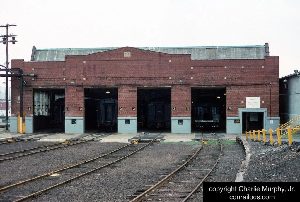 The Conrail special equipment was moved to the Conrail Reading Shops, Reading, PA. The shops possessed everything Conrail needed to house the business and research cars. The large brick passenger shop had a concrete floor and was 100 feet wide, accommodating four tracks which were capable of holding the entire fleet.